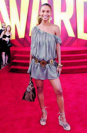宽松款的灰色阔领罩衫将Joy Bryant性感的身材包裹的更加性感,领口堆积的褶皱让香肩诱惑无限,腰间松散的腰带更让性感在细节之处闪耀。