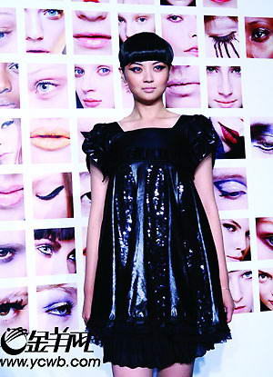 外溢的眼线和闪亮的服饰共同演绎未来酷感觉