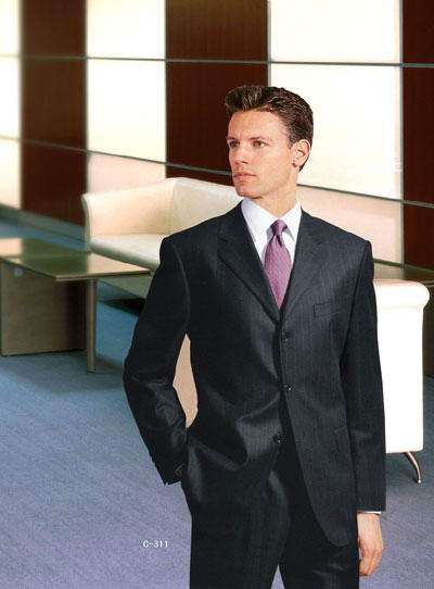 蓝色让我们联想起蓝天、海洋,因而被作为具有清新感的套装的规定色,它所营造出的年轻、鲜明、清爽的形象很受欢迎;同时,藏青色所给予人的那种理智、端庄、冷漠的印象也倍受男士推崇;此外,藏青色还有一种特征,就是它那色彩的深重感虽不同于黑色,但在某些时候却可以代替黑色,因此以深藏青色制成的制服给人以强有力的感觉,所以常常将它推举为办公制服的首选色是很有道理的。