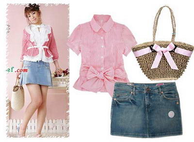 粉色是甜美的暗示,让人一眼就可以看出她的可爱,这款粉色的小衫搭配一款牛仔短裙,可以提升你的魅力指数。