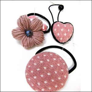 它通常由五颜六色的塑料小圆扣和万紫千红的小串珠而构成。这种发饰的最大特点是,点点缀缀,璀璨发光。远看像朵花,近看像宝石。串珠型发饰最能象征着什么?把平淡的日子串成幸福的珠。年轻的女孩最爱它,“让每一个日子都串联成我们最美丽的回忆。” 三:布艺型发饰。