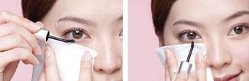 Step17、由于下睫毛很贴近脸部肌肤,若容易弄脏妆容,可于下睫毛下垫卫生纸。