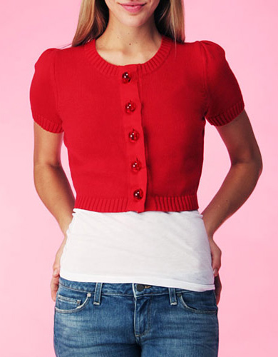 红色热情奔放,大粒的纽扣闪耀着诱人光彩
