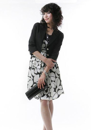 点评:黑白的花色连身裙,知性的柔美,加一件黑色修身短外套,给这身温柔加入一丝沉稳和硬朗,参加重要场合既不会沉闷又不显得轻佻。