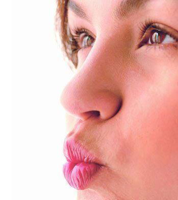 2 再上嘴唇和下嘴唇中央,各设定一点。嘴微微张开,将设定的点最大限度地含进嘴里。整体上,将嘴唇向里卷起,嘴形微张,呈椭圆形。