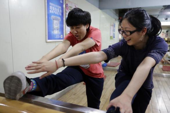 2012年12月17日,北京的一家体育馆,宁宁正与诺诺压腿。
