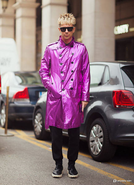 亮眼的金属光泽粉色风衣一出,立刻吸引无数目光扫射。相比前者的闷骚,金属粉色风衣绝对堪称坦坦荡荡的明骚!不过发型到身板似乎都没能更上前卫的步伐,让耀眼的风衣有些撑不住!