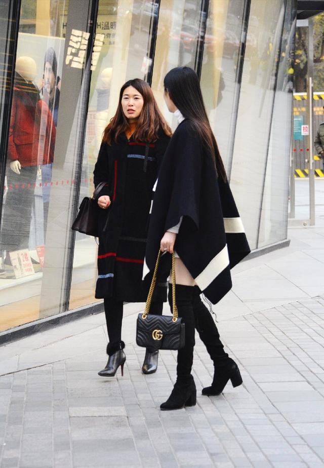 北京街拍寒冬穿黑色过膝靴的小姐姐美丽又吸睛