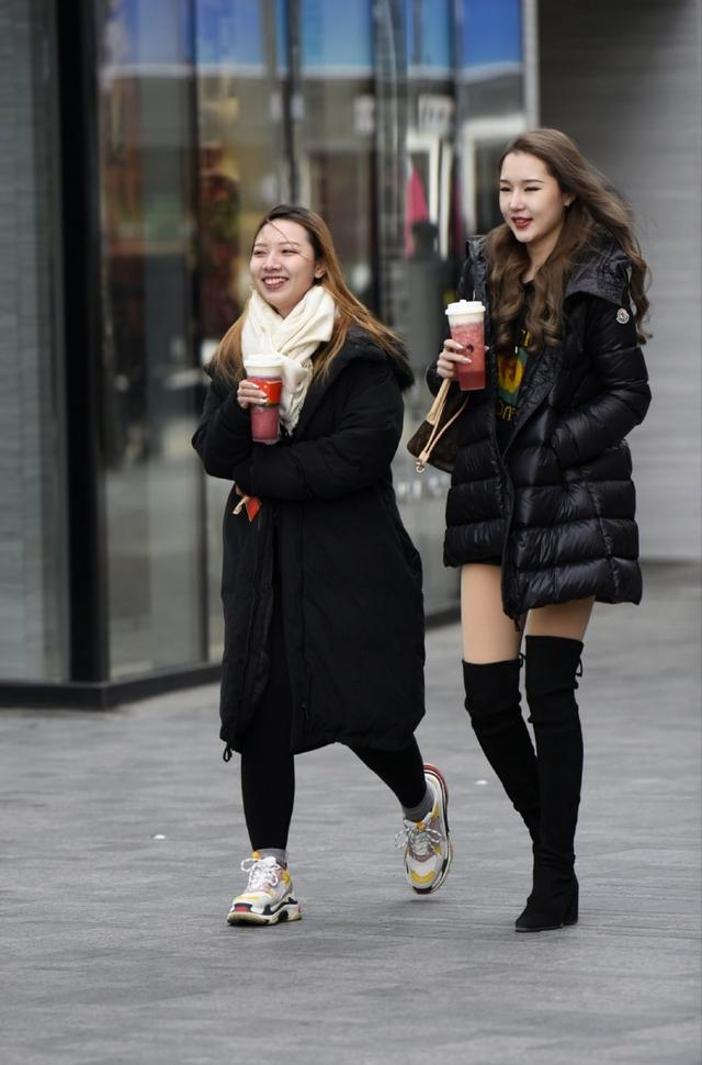 过膝靴是冬季很不错的一款百搭单品,特别是黑色的过膝靴,不仅百搭还显腿部线条的修长,而且看上去优雅又有女人味,因此深受女孩们的喜爱。这位和闺蜜逛街的女孩,敞开的黑色棉服搭配黑色绒面过膝靴,漂亮气质又有女神范。 转载自百家号作者:美女与时尚