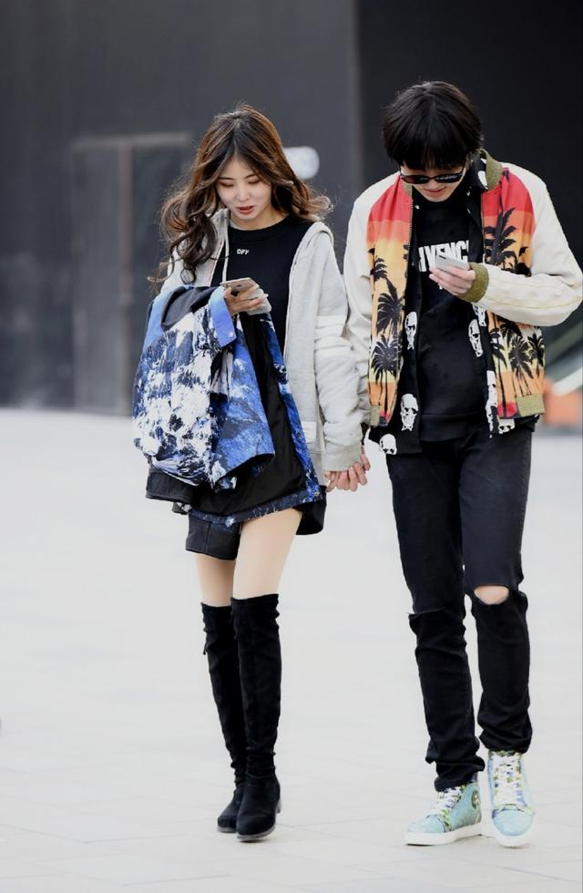 这位在男友陪伴下逛街的女孩,黑色中跟过膝靴搭配休闲款式的衣装,更是多了几分随性与可爱美。 转载自百家号作者:美女与时尚