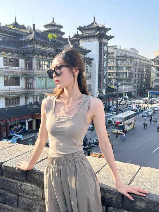 拥有锁骨和天鹅颈优势的女性,就可以像下面这位博主一样穿一件灰色背心+山本裤,秀出你的锁骨优势,还有肩部线条感,抢眼又抢镜,超级迷人。