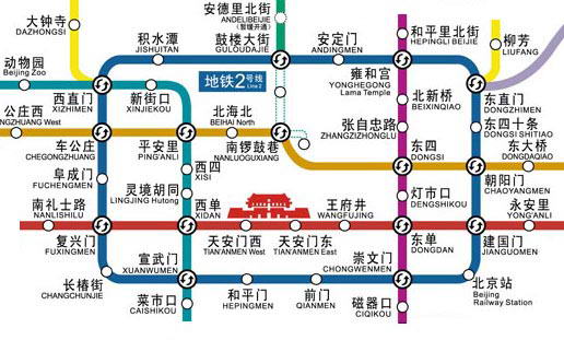 大厅售票,进站检票。地铁换乘站:雍和宫、崇文门:可换乘地铁5号线;西直门、东直门:可换乘地铁13号线;建国门、复兴门:可换乘地铁1号线。