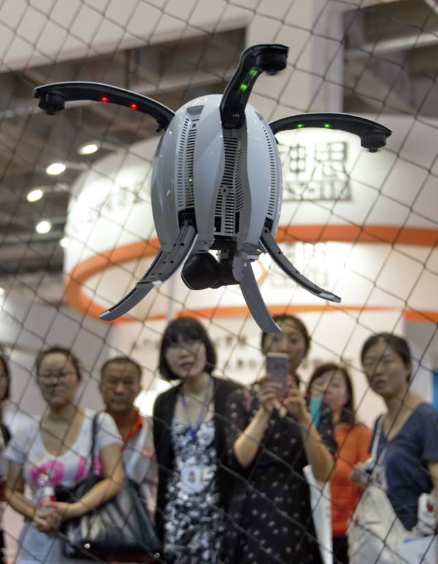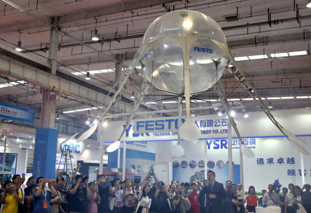 8月22日,在北京亦创国际会展中心展出的仿生水母吸引众多观众驻足。新华社记者 金立旺 摄