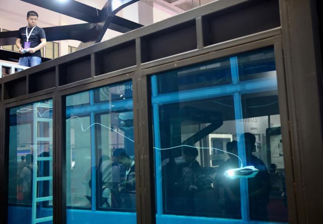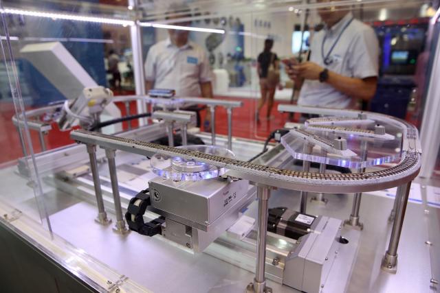 在北京亦创国际会展中心展出的智能换轨装置(8月22日摄)。新华社记者 金立旺 摄