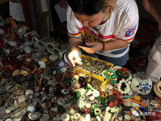 结伴而来的人,看中一个物品,会坐下来仔细研究真假。