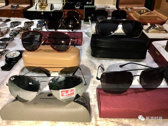 ↓专卖雷朋、古驰等大牌眼镜、手表的摊位,尽管都是A货,价格也在200-500元不等。