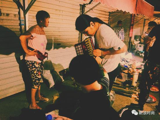 在鬼市的一个小摊位,我们遇到了一位时尚的年轻女孩。