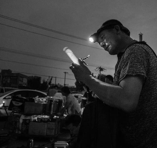 大柳树鬼市,只有路灯照明,光线很暗,有的摊主会在摊位前放上照明灯。来鬼市“淘宝”的人,则都自带手电筒,除了照明看清货物,据说还是一种身份象征:证明不是外行。