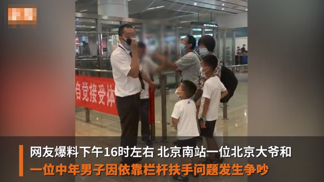他和一中年男子因倚靠栏杆扶手问题,起了纠纷和矛盾。