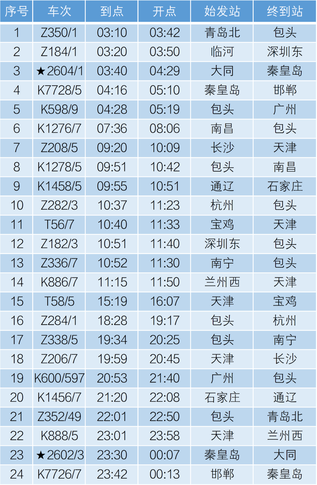 (*车次详情请查询中国铁路12306官方网站,如有变化以车站当日公告为准。)