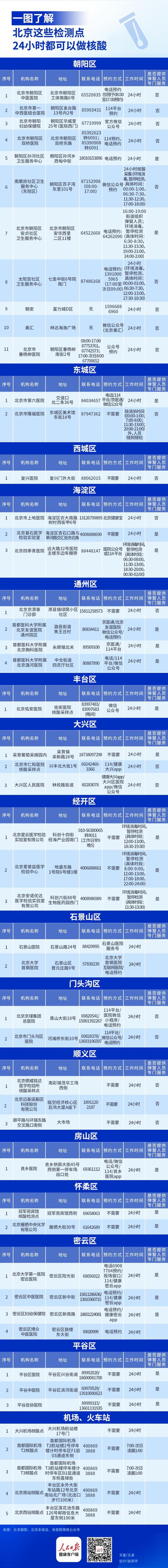 根据北京朝阳、北京健康宝等多个信息汇总,截至7月9日,北京市各区县24小时核酸检测点已增加到至50家。广大市民在特殊时间段需检测核算的,可根据需要选择就近的核酸检测点进行核酸检测。为防止各检测点时间安排有变,建议市民电话咨询或按需预约后前去检测。