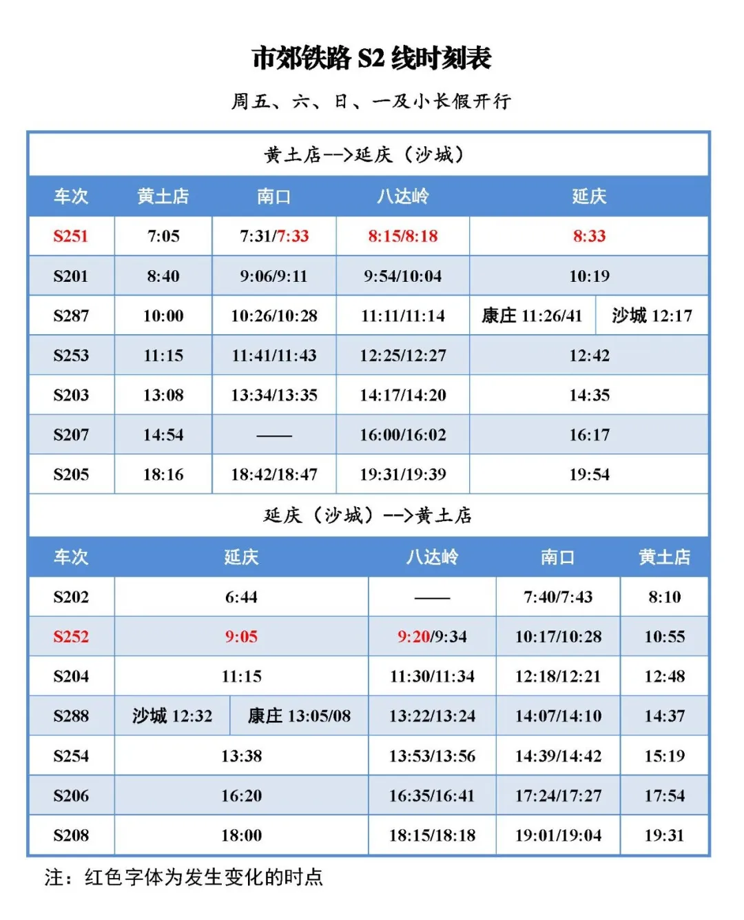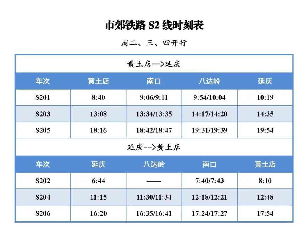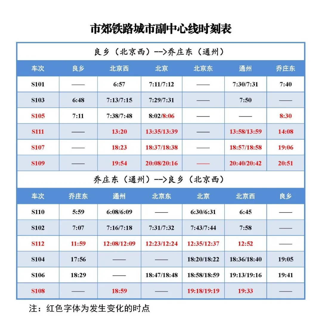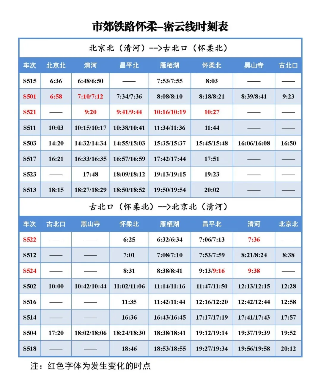 “北京市郊铁路”微信公众号发布消息,自2024年6月15日起,市郊铁路城市副中心线、怀柔-密云线及S2线列车开行时点部分调整,具体列车时刻表如下: