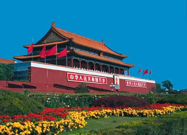位于北京市区中心,南北长880米,东西宽500米,面积44万平方米,是当今世界最大的广场。天安门城楼坐落在广场的北端,五星红旗在广场上空高高飘扬。人民英雄纪念碑屹立在广场的中央。人民大会堂和中国革命博物馆、中国历史博物馆在广场的东西两侧遥遥相对。毛主席纪念堂和正阳门城楼矗立在广场的南部。每天有成千上万的人到这里参观、游览和摄影留念。国庆节的天安门广场,有成千上万盆五颜六色的鲜花和喷泉装点着,是广场一年中最美丽的时候。