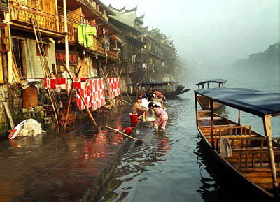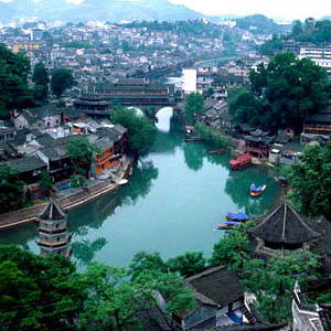如果你想目睹真正的湘西风情,你不得不到凤凰城(又名沱江镇)走一趟。凤凰城是湘西土家族苗族自治州的凤凰县的县城,位于吉首市南五十三公里处,它紧邻沱江而建,吊脚木楼布满山坡。这里是文学大师沈从文的故乡,他曾在《边城》中描绘过它素朴而迷人的风情。