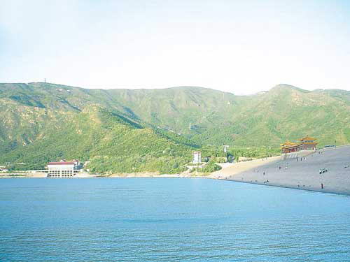 白河堡比金海湖大两三倍,由于深藏在偏僻的山野,其原始自然风光得以完好地保存着,同时又是北京的饮用水水源上游,所以没有丝毫污染。水库的两侧还能看到高高的烽火台,而水库东边的山脊上一道毛石砌筑的长城连绵起伏,那就是明代外长城的遗迹。