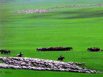 草原景观:森林公园北、西部被广亵的草原所环抱。绿茵如毡,坦荡无际,风吹草低)牛羊成群。极盯远眺,蓝天、白云与草原、羊群相融相连。间或传来骏马的嘶鸣和牧羊人的音哨,令人心旷神怡,浮想联翩。