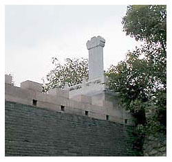 "蓟门烟树"碑,立在德胜门外五里的土城边。这里历史上曾有"烟树"的景观,但此处并非蓟门。汉代以后的蓟城在今广安门一带已无非议,那为何又称此处为蓟门呢?《水经注》说:"蓟城西北隅有蓟丘",指的当是原白云观处之土丘。邹?说:"蓟门在旧城西北隅",把"旧城"误解了,其实应指金中都(元大都建成后,称金中都为旧城)。明代的《长安客话》索性说:"今都城德胜门外有土城关,相传是古蓟门遗址,亦曰蓟丘。"显然是错误了。乾隆钦定的《日下旧闻考》以此为依据,故把"蓟门烟树"碑立在这里。《八景图》记说:"门之外,旧有楼馆,雕栏画栋,凌空漂渺,游人行旅,往来其中,而门犹存二土阜,树木蓊然,苍苍蔚蔚,晴烟浮空,四时不改。""蓟门烟树"之名取自唐代诗人李益的诗《秦城》: