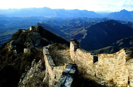 慕田古堞 ——在怀柔的慕田峪看长城,蜿蜒曲折,雄姿勃发,最大的特点是“险”与“奇”。这里的关城也是明洪武年间徐达督建的,后经戚继光等扩建。慕田峪地势险要,易守难攻,是兵家必夺之地。这里的关隘往往建在陡峭崖上,尤其是建在海拔1000多米山顶上的“牛犄角边”和建立在险峰上的“箭扣”以及“鹰飞倒仰”长城,都极为险峻。