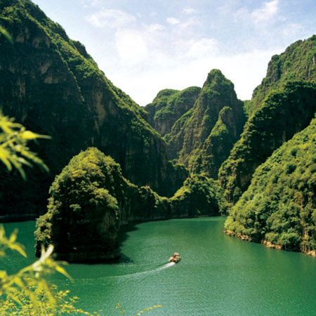 幽峡流碧 —— 延庆的龙庆峡峰峦峭立,山青水秀,7公里长的峡谷既有南方的秀丽,又有北方的雄奇,开阔与幽深间或,险峻与浅滩并存,神仙院、金刚寺、玉泉阁、神笔峰等奇山异景胜似仙境,到了冬天又成为冰雕和冰灯的世界。每年的冰灯节吸引了众多的八方宾客。