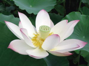 漫步湖边,远近层叠的荷叶如一层又一层的绿浪,在浪中托起娇媚而不妖、明而不艳的莲花,楚楚动人、温文尔雅、脉脉含情。忽香气沁鼻,心旷神怡,这种香气不是茉莉的幽香,也不是玫瑰的强烈,而是合着清涟的湖水的味道送入心扉。花形虽大,却不张扬浮夸,淡淡然而静若处子。有水灵灵的粉红色,也有纯洁的白色镶红边,游园的人们很多,衣着颜色多彩,却绘不出这般的自然天成。举着沉重的相机,对着荷花、荷叶、莲蓬不住地拍着,不管怎样,都拍不尽它的姿态万千和千娇百媚。