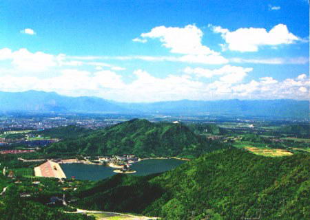 三景,国家八五重点工程“十三陵抽水蓄能电站”的上池,盘踞在蟒山山顶,容积445万立方米,水深37米,是国内最大的人工天池,犹如一块明镜镶嵌在群峰之中。