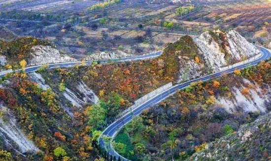 在昌平流村镇有一条百里环形走廊,始于流村环岛亦终于流村环岛,整条公路环绕于高山之间,宛如长龙盘卧层林中。