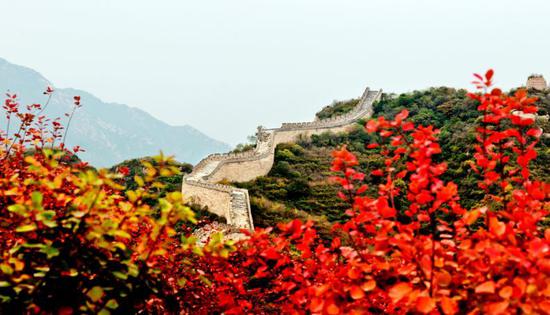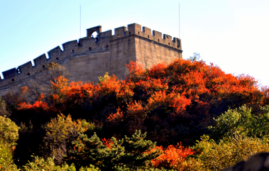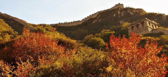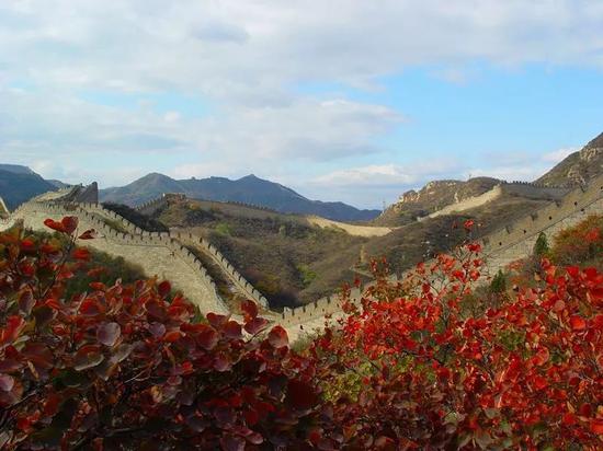 柔媚清新的红叶与沧桑刚劲的长城相映,形成独特的红叶辉映长城的美景。
