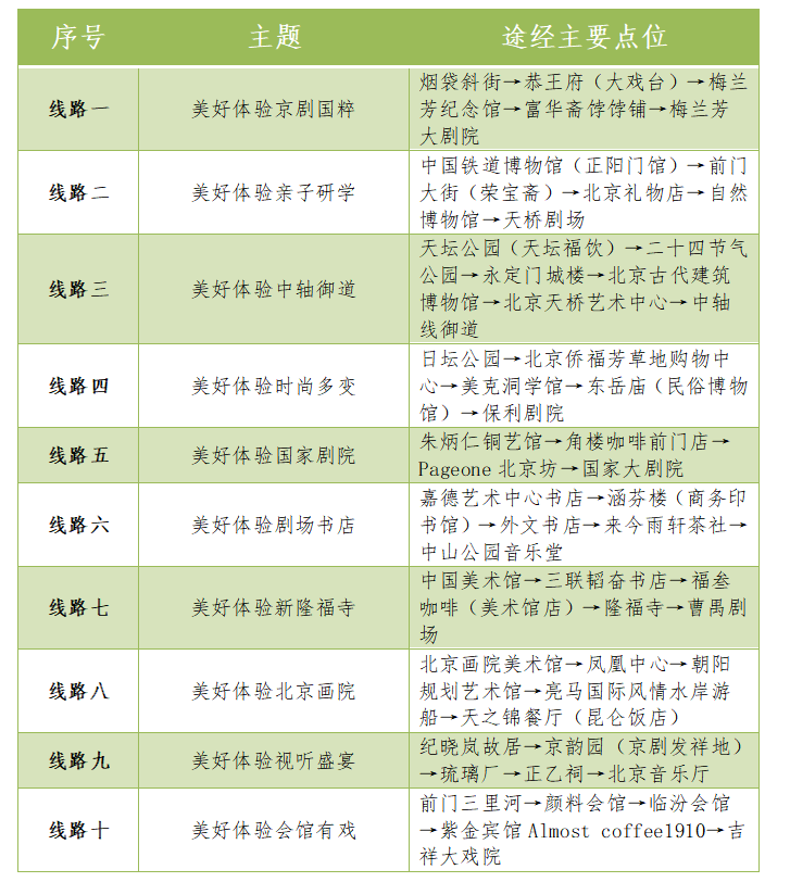 10条“漫步北京-美好体验艺术之旅主题游”线路名称